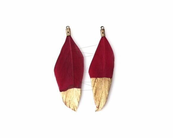 BSC-197-G/5pcs/Gold Dipped Brown Color Duck Feather Charm/20mm x 53mm
