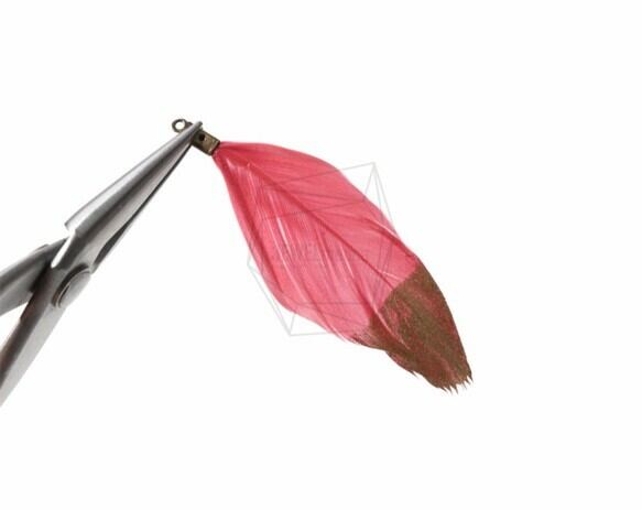 BSC-198-G/5pcs/Gold Dipped pink Color Duck Feather Charm/20mm x 53mm