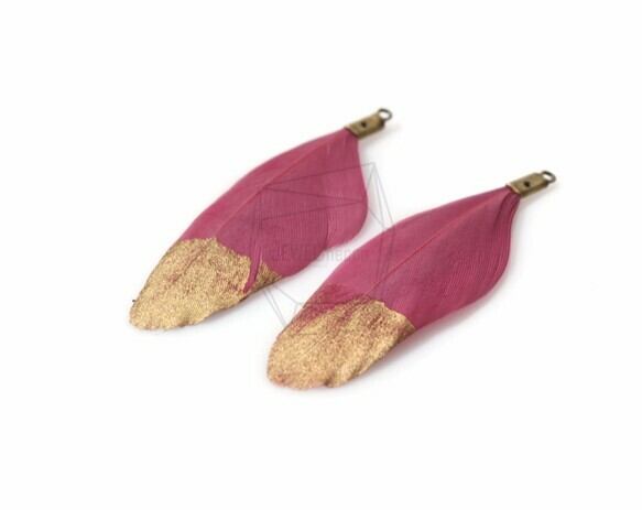 BSC-199-G/5pcs/Gold Dipped pink Color Duck Feather Charm/20mm x 53mm