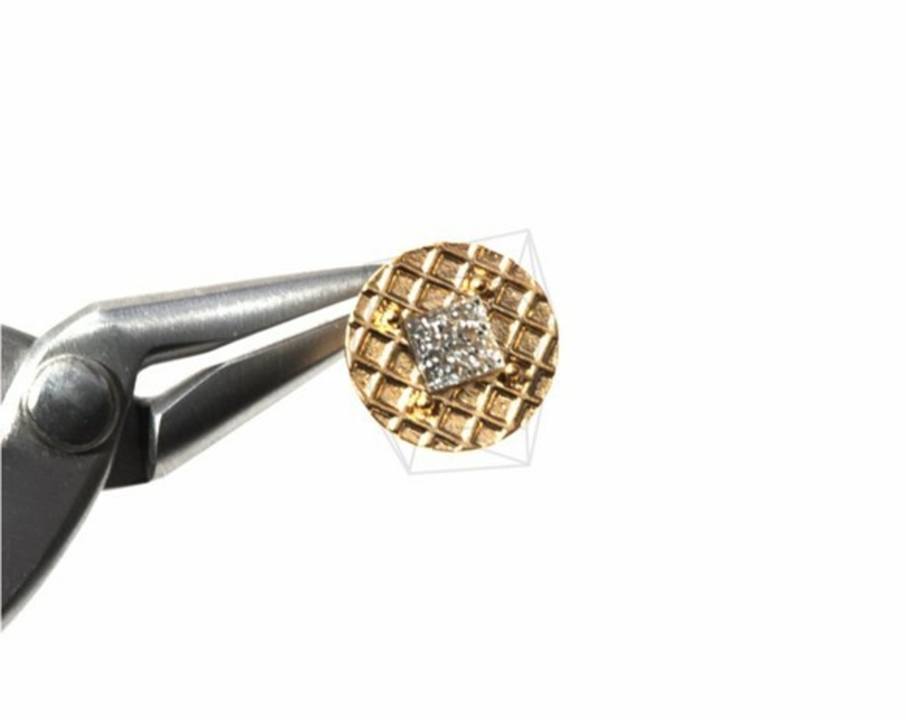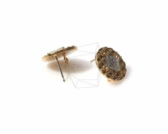 ERG-360-MG/2Pcs-round Waffled Ear post/ 15mm x 15mm /Matte Gold Plated over Brass/925 sterling silver post