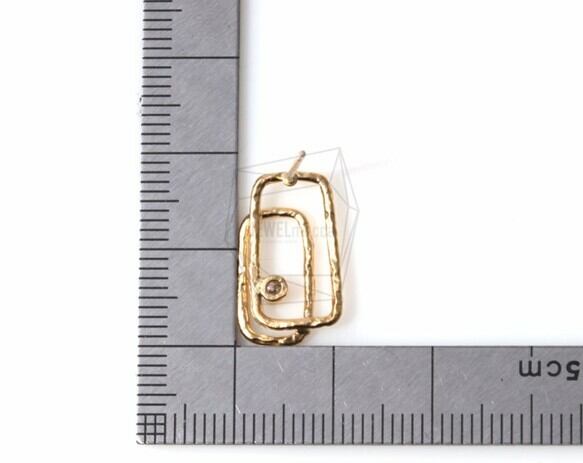 ERG-335-MG/2PCS/Double Square Earring with CZ Stone/10mm x 18mm/Matte Gold Plated Over Brass