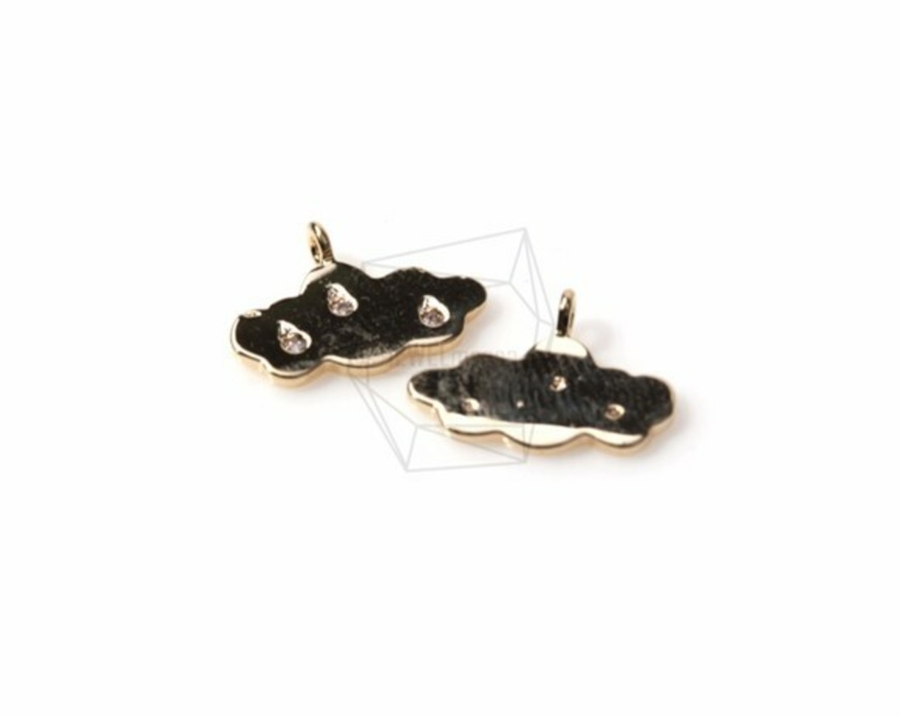 PDT-998-G/2PCS/CZ Rainy Cloud Pendant/15mm x 8mm/Gold Plated over Brass