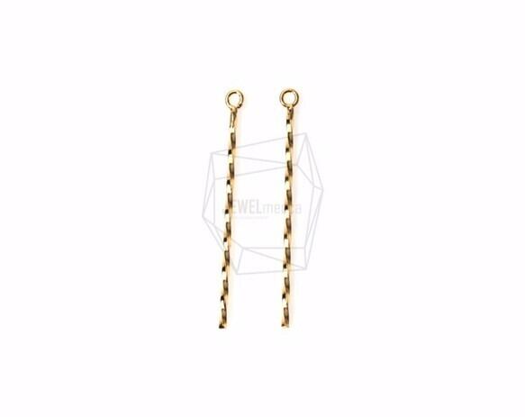 PDT-1002-G/2PCS/Vertical Twisty Bar Pendant/1mm x 40mm/Gold Plated over Brass