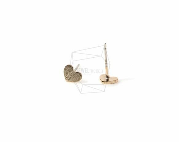 ERG-381-MG/2PCS/Textured Heart Earring/6mm x 5mm/Matte Gold Plated over Brass