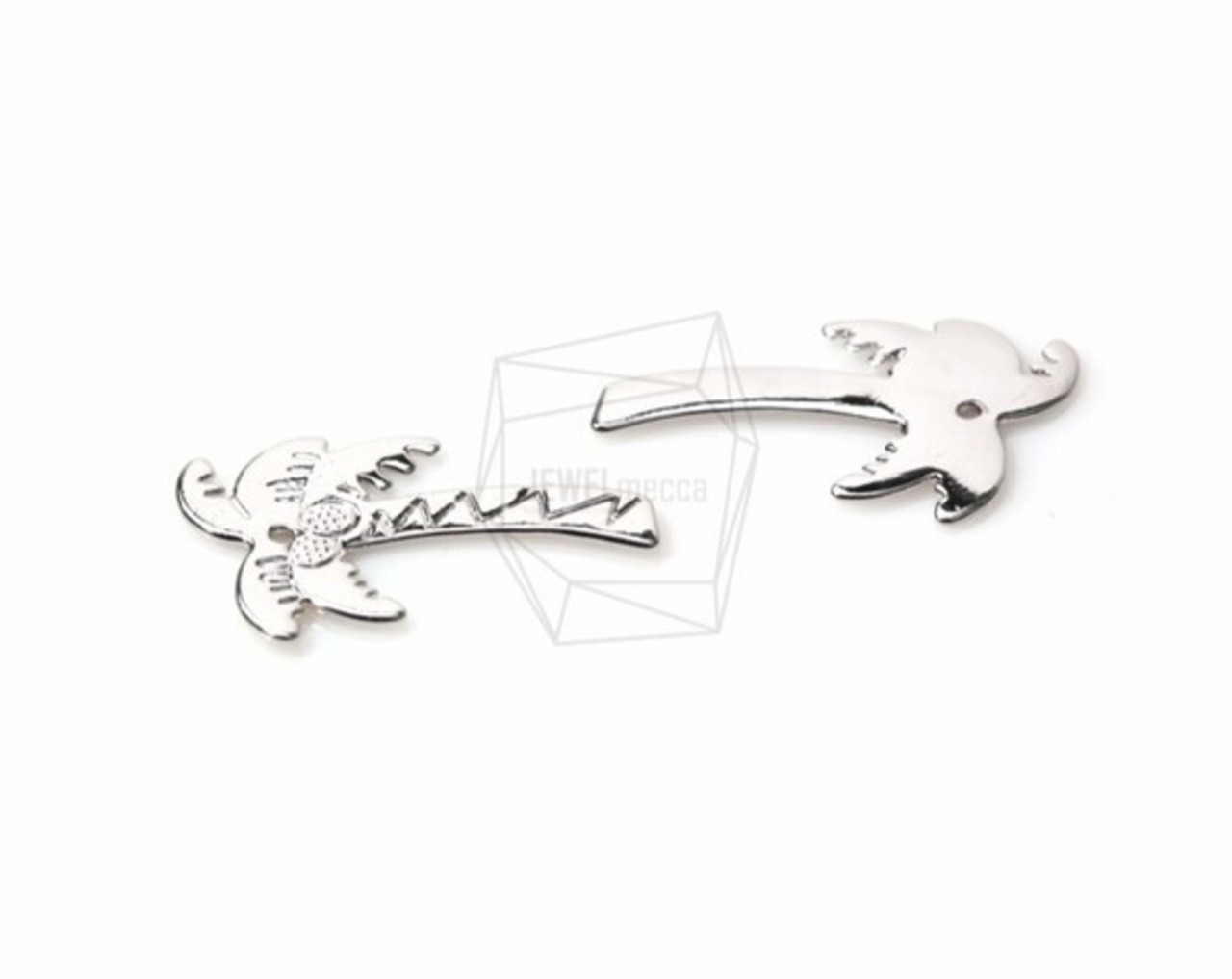 PDT-1038-R/2PCS/Palm Tree Pendant/18mm x 25mm/Rhodium Plated over Brass