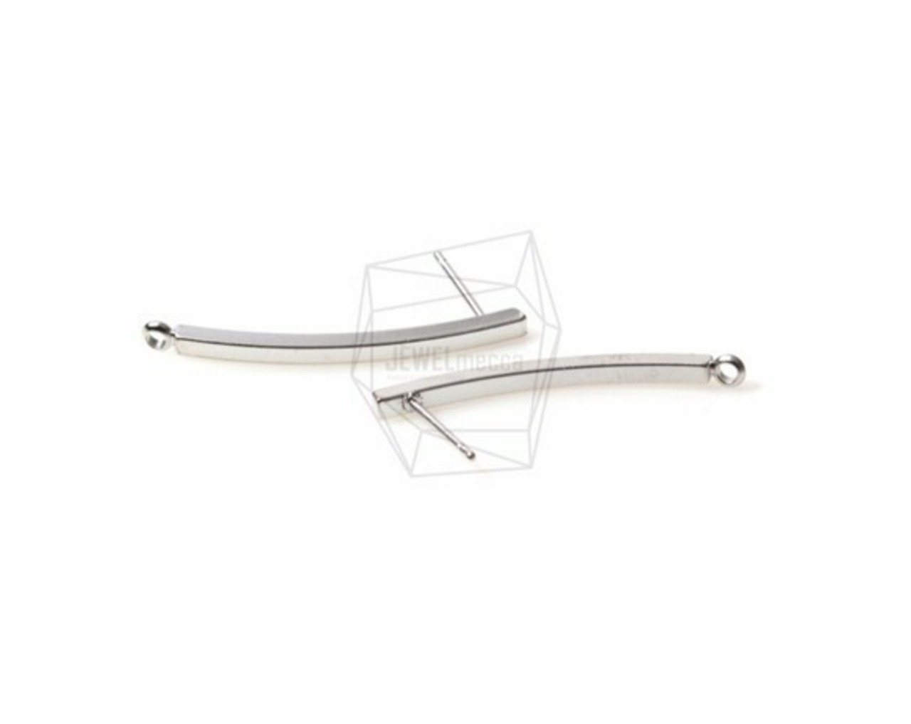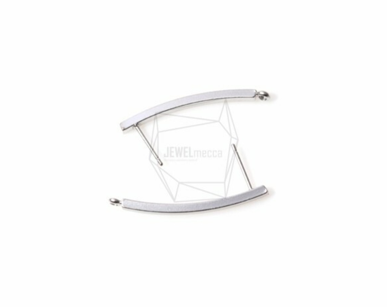 ERG-387-MR/2PCS/Curved Bar Earring Post/5mm x 32mm/Matte Rhodium Plated over Brass