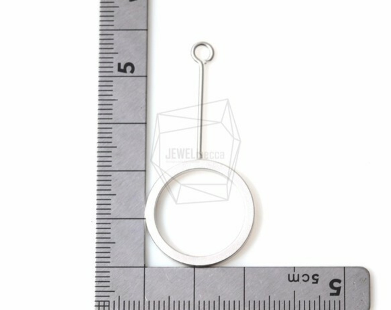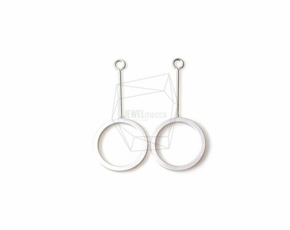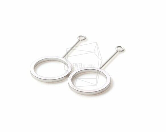 PDT-1053-MR/2PCS/Short Hanging Circle Pendant/22mm x 42mm/Matte Rhodium Plated over Brass