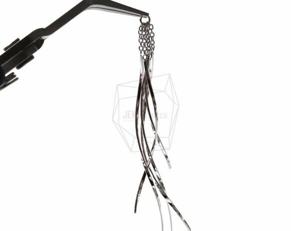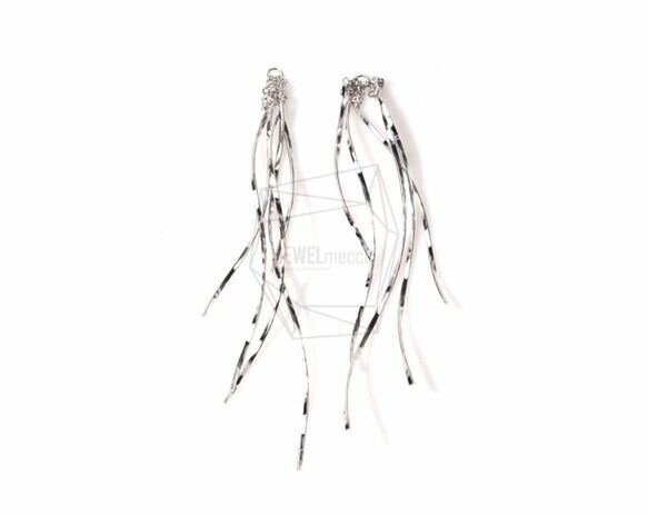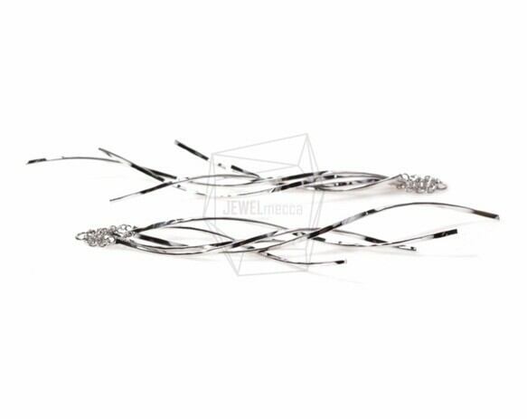 ERG-389-R/2PCS/Wavy Wire Tassel Earring/84mm x 10mm/Rhodium Plated over Brass