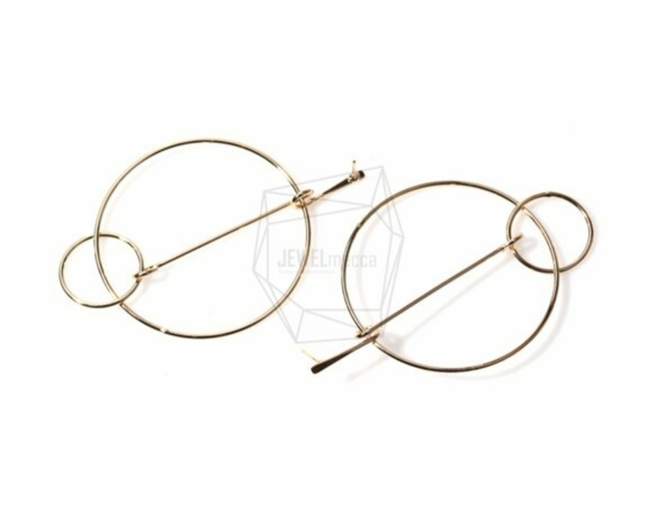 ERG-390-G/2PCS/Double Circle Wire Earring Post/45mm x 71mm/Gold Plated over Brass