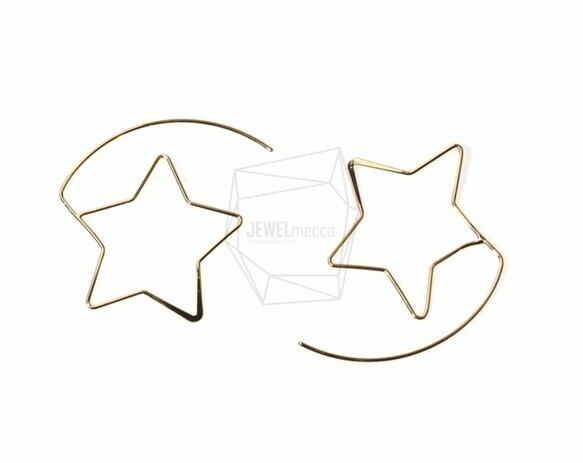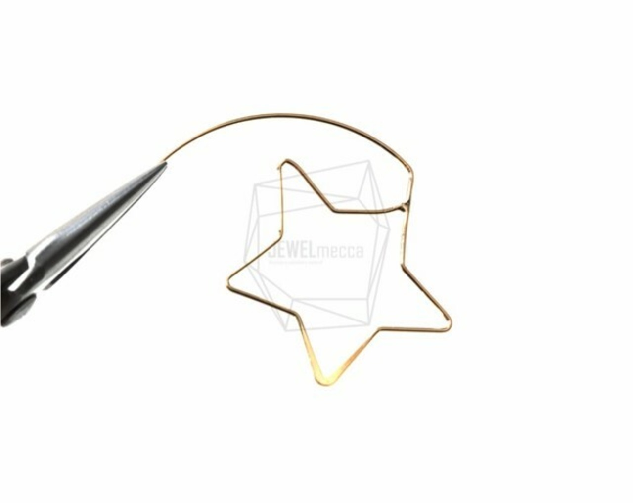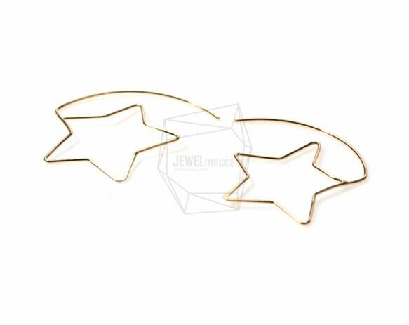 ERG-392-G/2PCS/Wire Star Hook Earring/35mm x 38mm/Gold Plated over Brass