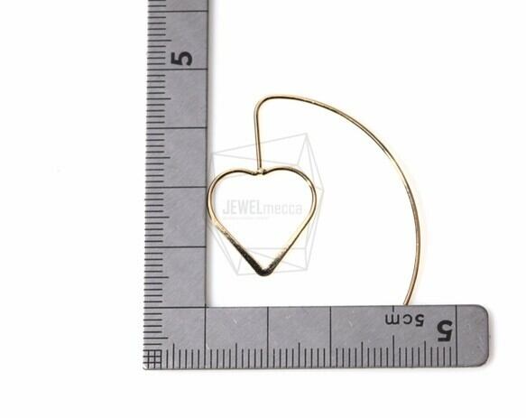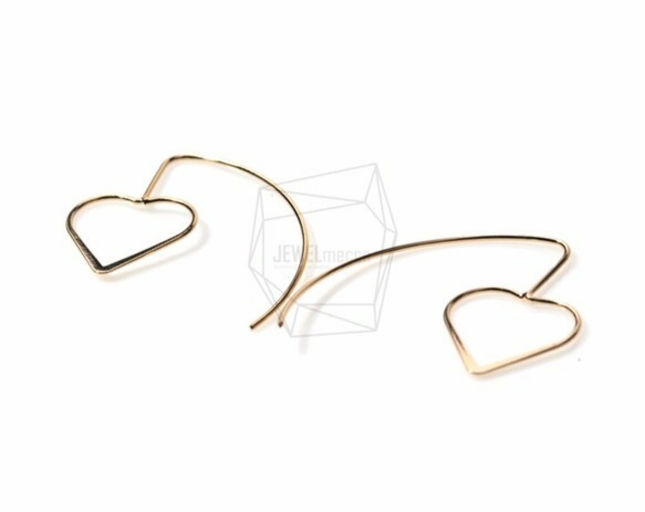 ERG-393-G/2PCS/Wire Heart Hook Earring/34mm x 35mm/Gold Plated over Brass