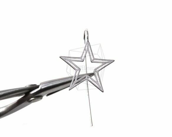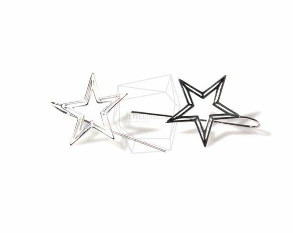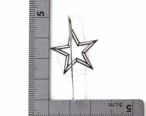 ERG-394-R/2PCS/Double Stroke Star Hook Earring/23mm x 40mm/Rhodium Plated over Brass