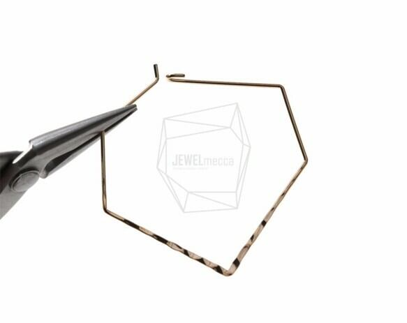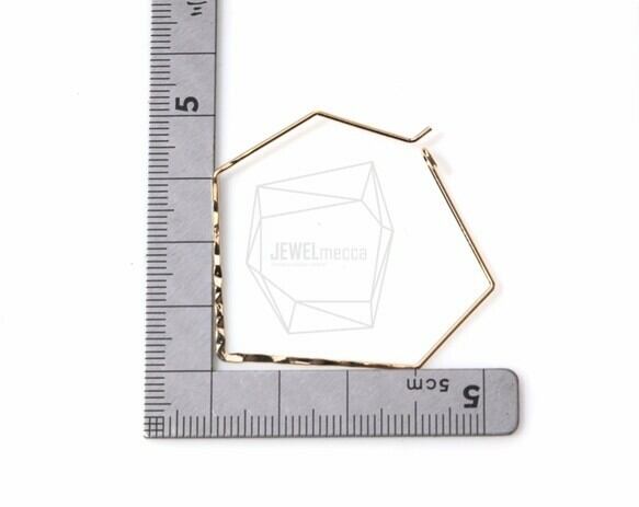 PDT-396-G/2PCS/Textured Wire Pentagon Earring/40mm x 42mm/Gold Plated over Brass
