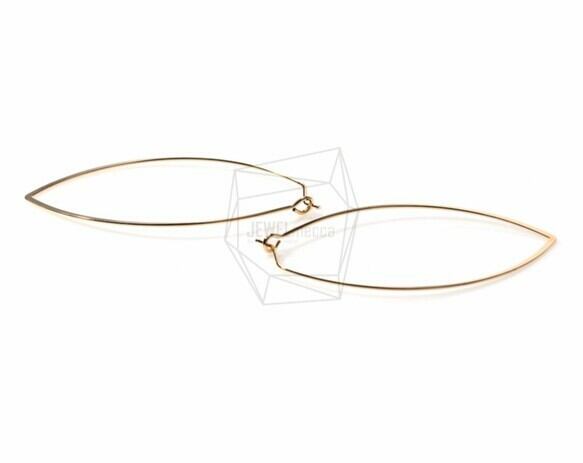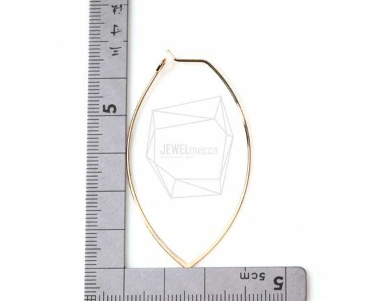 ERG-397-G/2PCS/Wire Leaf Earring/30mm x 55mm/Gold Plated over Brass