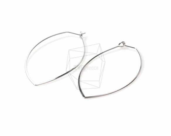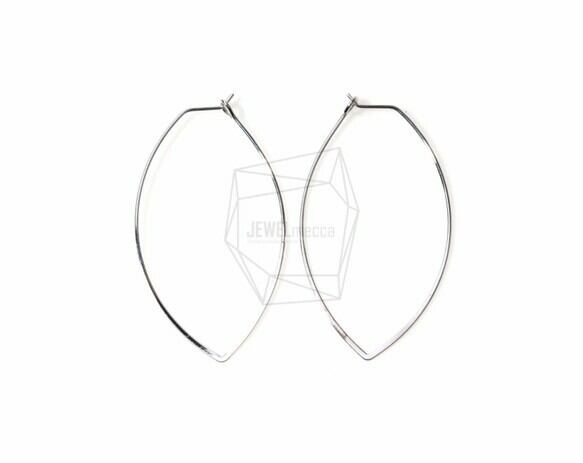 ERG-397-R/2PCS/Wire Leaf Earring/30mm x 55mm/Rhodium Plated over Brass