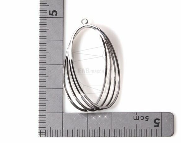 PDT-1057-R/2PCS/Triple Stack Oval Pendant/15mm x 38mm/Rhodium Plated over Brass