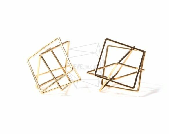 PDT-1058-MG/2PCS/Intertwined Square Pendant/33mm x 35mm/Matte Gold Plated over Brass