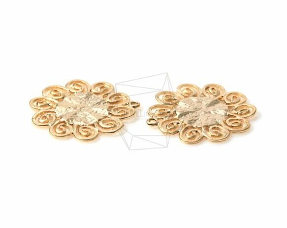 PDT-1061-MG/2PCS/Swirl Pedal Flower Pendant/27mm x 28mm/Matte Gold Plated over Brass
