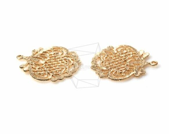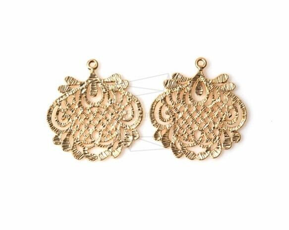 PDT-1064-MG/2PCS/Round Ornate Pendant/26mm x 27mm/Matte Gold Plated over Brass