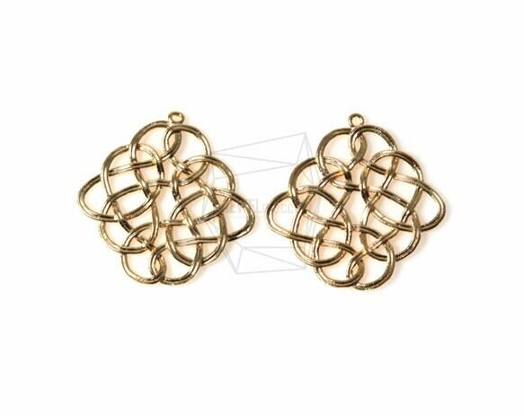 PDT-1068-MG/2PCS/Diamond Celtic Knot Pendant/30mm x 28mm/Matte Gold Plated over Brass