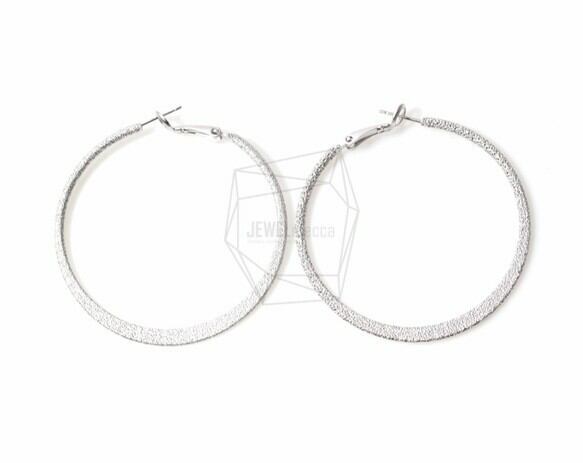 ERG-411-MR/2PCS/Textured Hoop Earring Post/52mm/Matte Rhodium Plated over Brass