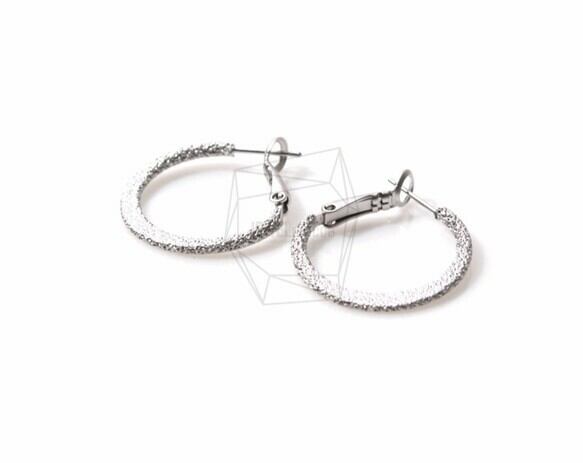 ERG-413-MR/Mini Textured Hoop Earring Post/25mm/Matte Rhodium Plated over Brass