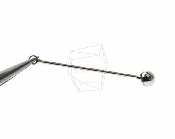 PDT-1071-R/2PCS/Pin With Ball Pendant/7mm x 58mm/Rhodium Plated over Brass