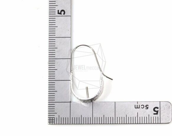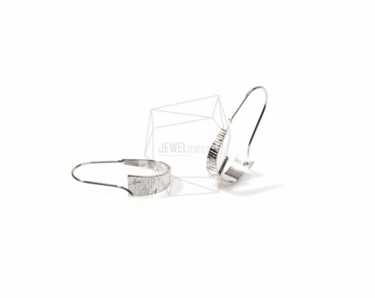 ERG-417-R/2PCS/Textured Half Circle Earring Hook/15mm x 28mm/Rhodium Plated over Brass