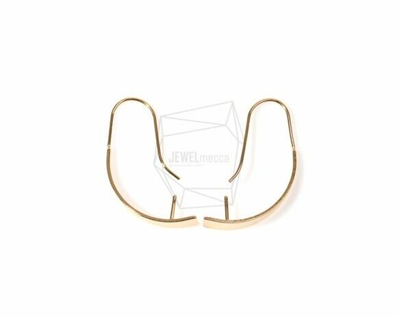 ERG-418-G/2PCS/Curved Plate Hook Earring/22mm x 30mm/Gold Plated over Brass