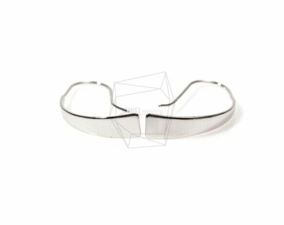ERG-418-R/2PCS/Curved Plate Hook Earring/22mm x 30mm/Rhodium Plated over Brass
