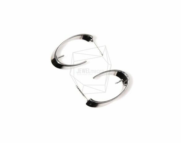 ERG-419-R/Curved Wide Plate Hook Earring/17mm x 27mm/Rhodium Plated over Brass
