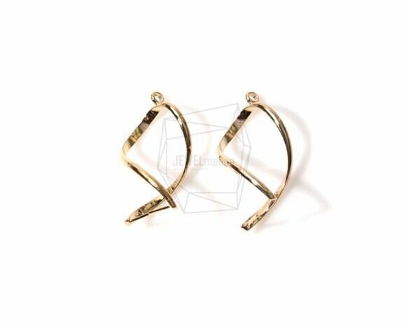 PDT-1083-G/2PCS/Double Twisted Bar Pendant/16mmx 30mm/Gold Plated over Brass