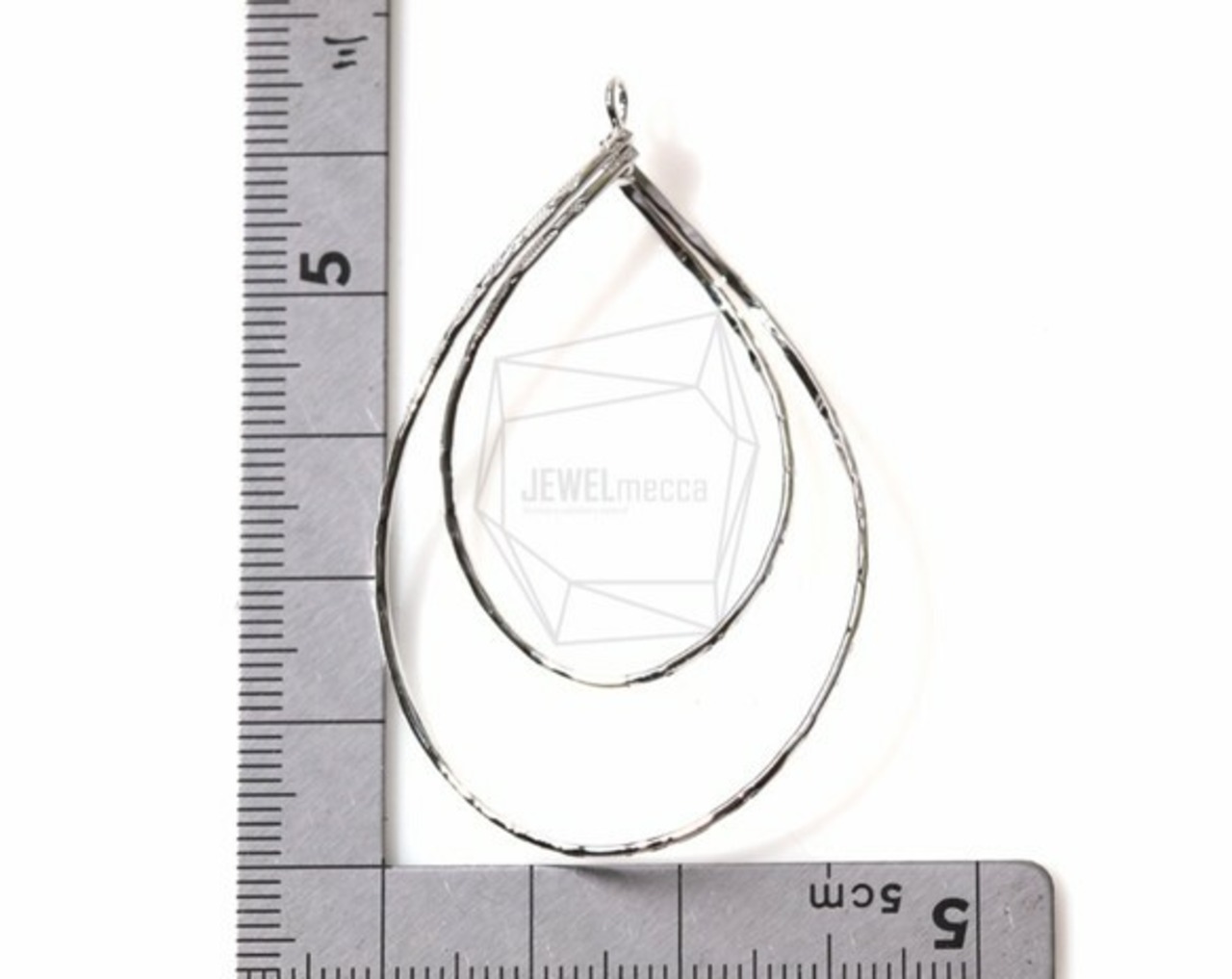 PDT-1086-R/2PCS/Hammered Double Teardrop Hoop Pendant/32mm x 50mm/Rhodium Plated over Brass
