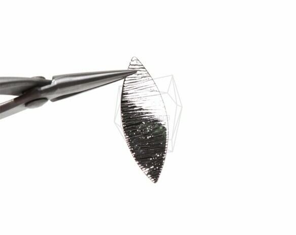 PDT-1087-R/2PCS/Textured Leaf Shape Pendant/12mm x 35mm/Rhodium Plated over Brass