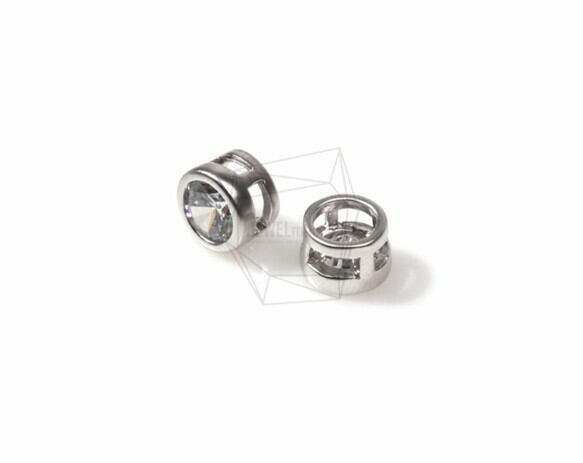 PDT-1090-MR/4PCS/Circle CZ Pendant/7mm x 7mm/Matte Rhodium Plated over Brass