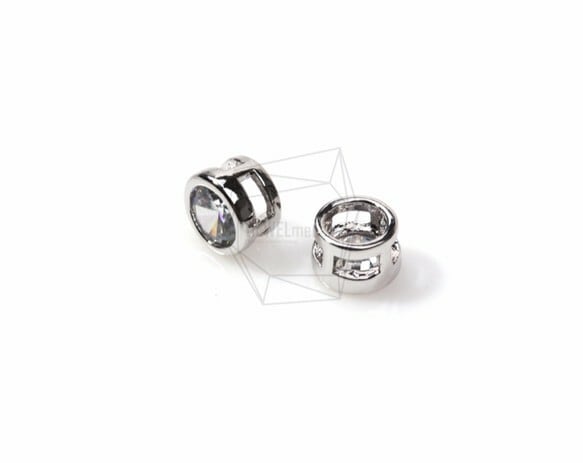 PDT-1090-R/4PCS/Circle CZ Pendant/7mm x 7mm/Rhodium Plated over Brass
