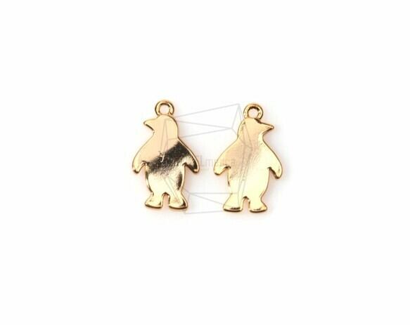 PDT-1094-G/2PCS/Penguin Pendant/8mm x 12mm/Gold Plated over Brass