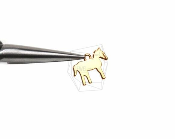 PDT-1096-G/2PCS/Horse Pendant/11mm x 9mm/Gold Plated over Brass