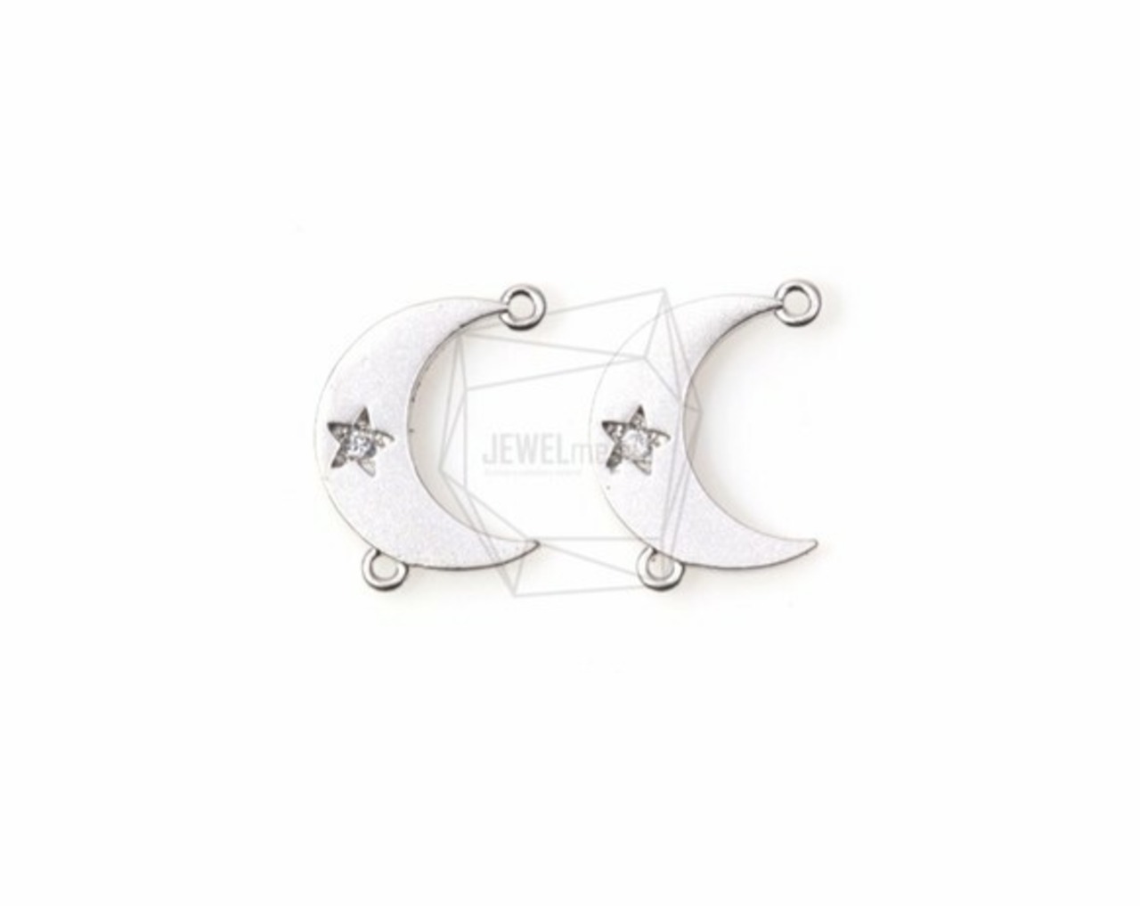 PDT-1104-MR/2PCS/Crescent Moon Pendant/11mm x 14mm/Matte Rhodium Plated over Brass