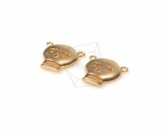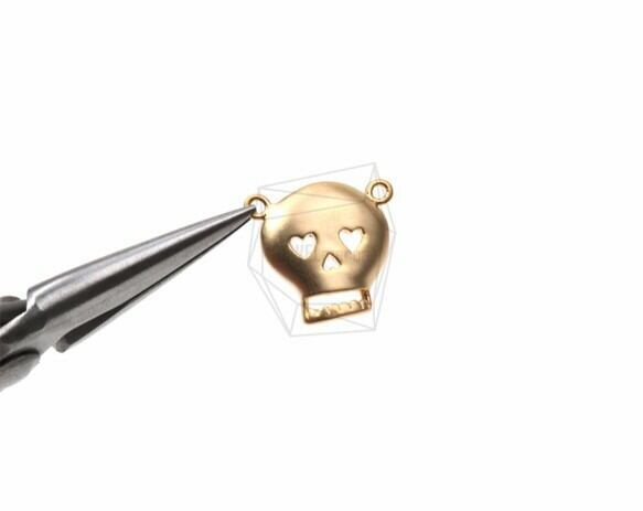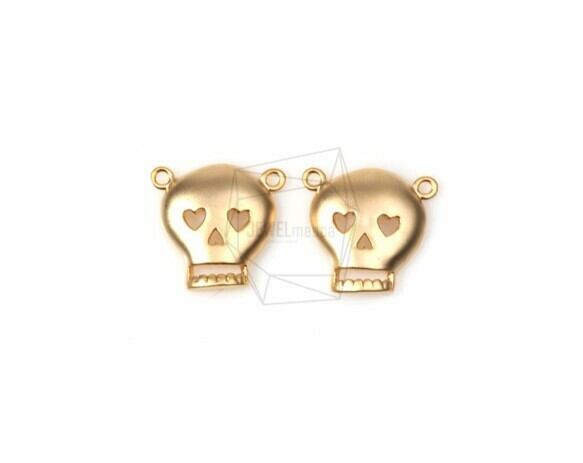 CNT-140-MG/2PCS/Heart Eyes Skull Charm/13mm x 14mm/Matte Gold Plated over Brass