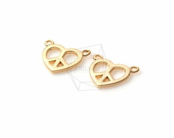 CNT-141-MG/2PCS/Peace Heart Charm/12mm x 11mm/Matte Gold Plated over Brass
