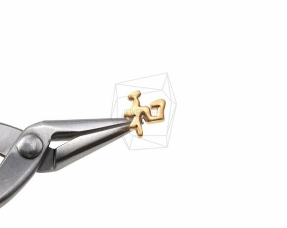ERG-436-MG/2PCS/Chinese Symbol Earring Post/10mm x 12mm/Matte Gold Plated over Brass/925 Sterling Silver Post