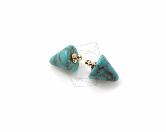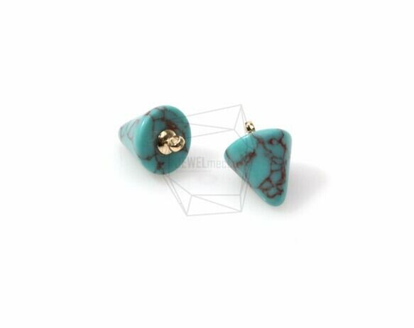 STO-065-G/2Pcs-stone Cone Pendant/ 9mmx12mm /Gold Plated over brass