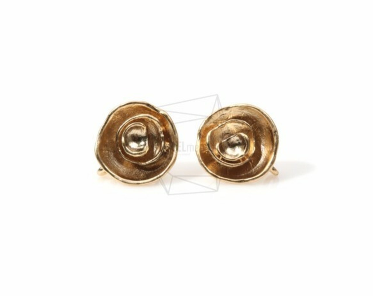 ERG-444-MG/2PCS/Circle Abstract Flower Earring Post/17mm x 17mm/Matte Gold Plated over Brass/925 Sterling Silver Post