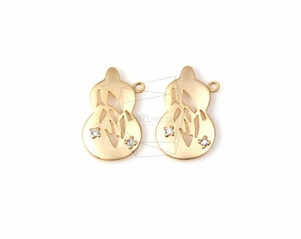 PDT-1116-MG/2PCS/CZ Cutout Pendant/13mm x 22mm/Matte Gold Plated over Brass