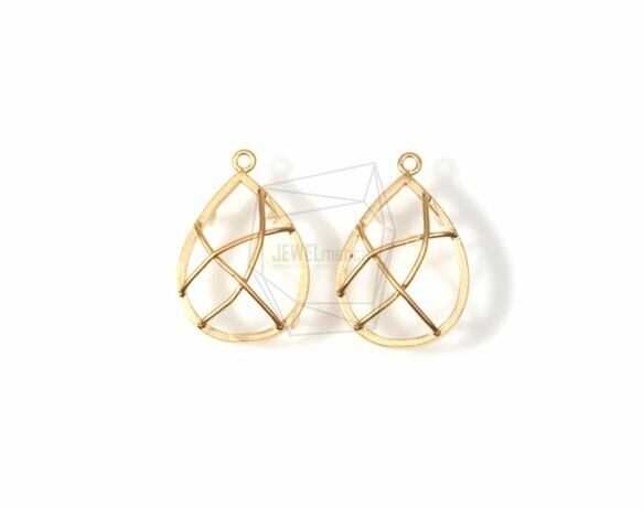 PDT-1117-MG/2PCS/Teardrop With Lines Pendant/15mm x 21mm/Matte Gold Plated over Brass