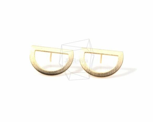 ERG-454-MG/2PCS/Half Circle Earring Post/14mm x 21mm/Matte Gold Plated over Brass/Titanium post