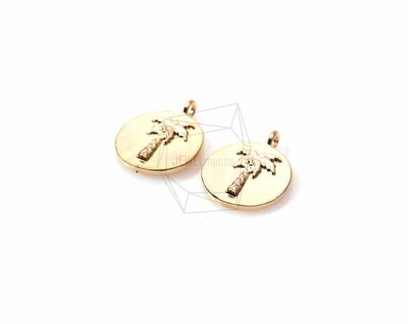 PDT-1153-MG/2PCS/Palm Tree Coin Pendant/12mm x 12mm/Matte Gold Plated over Brass