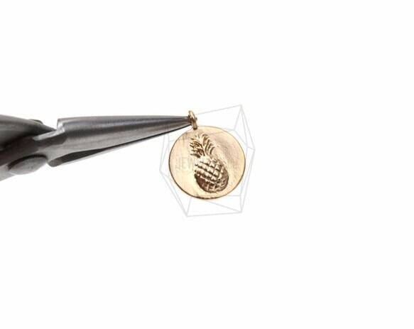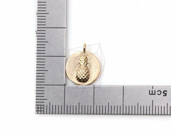PDT-1155-MG/2PCS/Pineapple Coin Pendant/12mm x 12mm/Matte Gold Plated over Brass