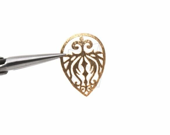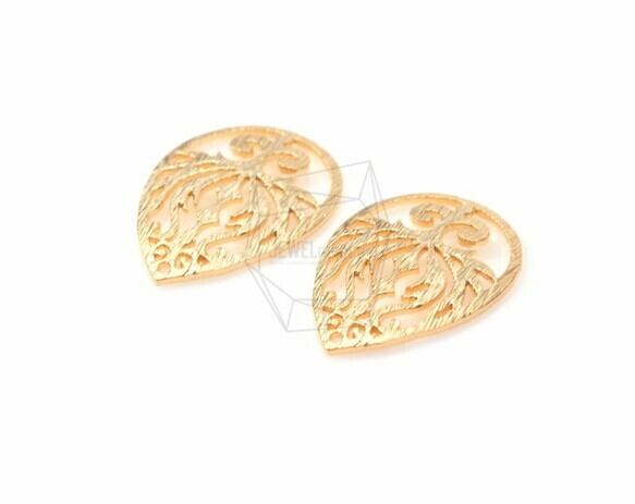 PDT-1163-MG/2PCS/Teardrop Ornate Cutout Pendant/18mm x 25mm/Matte Gold Plated over Brass